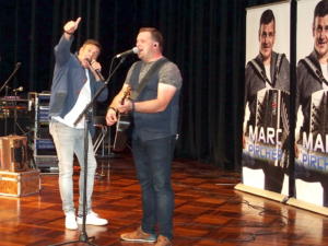 Foto: Ahmad Marouf und Mohammad AlaliSpäter wandelte sich dann das Format, indem Knut Schubert Benefizkonzerte veranstaltete, bei denen auch die Musiker auf einen Teil ihrer Gage verzichteten. Zum 25-Jährigen Jubiläum 2001 wurde Resümee gezogen. Bis dahin waren bereits 80.000 DM zusammengekommen. Bei diesem Jubiläum trat erstmals der Österreicher Sänger Marc Pircher als Stargast zur Tanzveranstaltung nach dem Turnier auf. Damals stand der Zillertaler volkstümliche Musiker seit fünf Jahren auf der Bühne. Der 43-Jährige war der Einladung von Knut Schubert, dem Organisator und ehemaligen Vorsitzenden des FC Treffpunkt / Schmitteinander, gerne als Gast gefolgt. Die 40. Benefizveranstaltung, die Schubert vor fünf Jahren in der Stadthalle organisierte, sollte die letzte dieser Art sein. „Es war irgendwann mal an der Zeit aufzuhören“, sagte Schubert. Weil das Auf-die-Beine-stellen der Veranstaltung viel Zeit kostet. Winfried Brandenburg, OB a.D. und viele andere waren jedoch auf ihn zugekommen und hätten um eine Verlängerung gebeten. Selbst Marc Pircher, der gern nach St. Ingbert kam, fragte beim Organisator nach, ob er noch einmal kommen könne. Schließlich hat er hier neben der Lebenshilfe eine große Fangemeinde in Kirrberg, die es kaum erwarten kann, dass ihr Idol wiederkommt. Schubert ließ die Drähte wieder heiß laufen, um den Mann mit seiner steirischen Harmonika in die Saarpfalz zu bekommen. Aber 2019 musste Marc Pircher seinen Auftritt krankheitsbedingt absagen. 2020 machte die Corona Pandemie dem Ganzen einen Strich durch die Rechnung. Aber dieses Jahr nun fand die 45. und letzte Veranstaltung statt. Das soll dann aber auch endgültig die letzte sein. Wegen des Hygienekonzeptes waren nur 200 Konzertbesucher zugelassen. Demzufolge waren die Karten heiß begehrt und die Besucher kamen nochmal voll auf ihre Kosten und bedankten sich bei Knut Schubert mit heftigem Applaus.