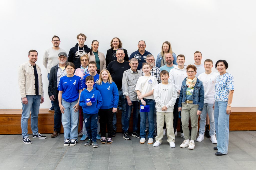 Die drei Gewinnergruppen durften sich über Grillgutscheine der Metzgerei Petermann freuen, die im Beisein von Andrea Kihm (obere Reihe 3.v.r.), Leiterin Abteilung Kultur, und Maria Pieter (3.v.r. vorne), Mitarbeiterin Stabsstelle Kommunikation und Vereine, von der Ortsvorsteherin Irene Kaiser (rechts) und ihrem Stellvertreter Fabian Roschy (links) überreicht wurden.