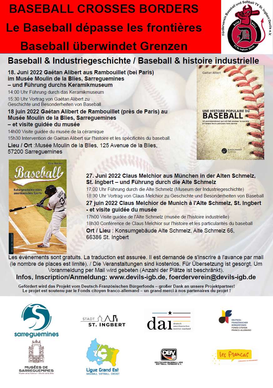 Die Veranstaltung ist sozusagen der kulturelle Teil des deutsch-französischen Projekts „Baseball crosses borders“, das die Devils des TV St. Ingbert in diesem Jahr in Sarreguemines und St. Ingbert veranstalten.