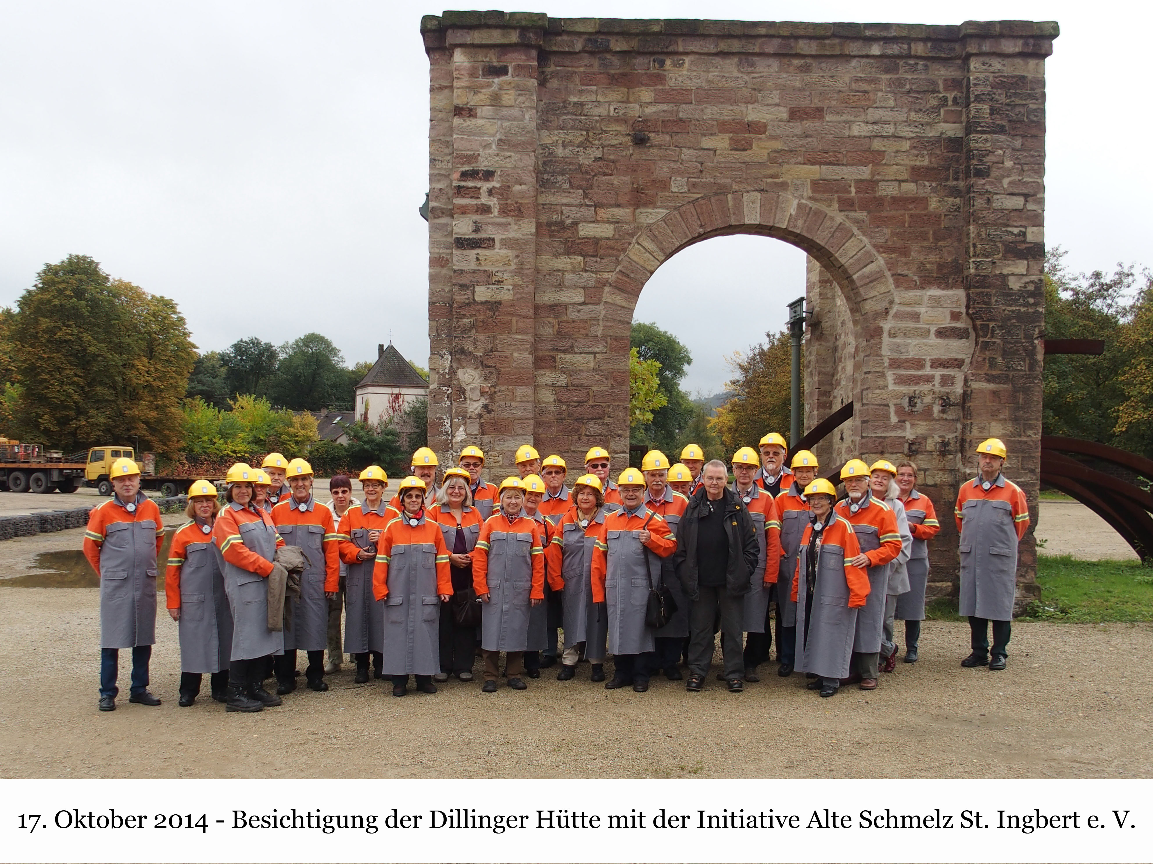 Am Freitag 17. Oktober 2014 ging die Fahrt gegen 8:30 Uhr etwas verspätet los. Unser Busfahrer Erich Langenbahn der Firma Lay Touristik wartete natürlich gerne auf die Organisatorin Frau Dr. Susanne Nimmesgern, die mit ihrem Wagen bei Heusweiler im Stau steckte. Ohne sie wäre die Fahrt nicht möglich und auch nicht so interessant geworden. Wir erreichten trotzdem rechtzeitig die Dillinger Hütte und wurden am Tor 1 von Herrn Körtgen, der durch den Rundgang führte empfangen. Er bestieg den Bus und schaute sich erst mal die Fahrgäste an, ob sie auch den Sicherheitsbestimmungen gemäß gekleidet waren. Leider konnten drei Personen nicht an der Führung teilnehmen, da sie auf einen Stock bzw. Gehstützen angewiesen waren.