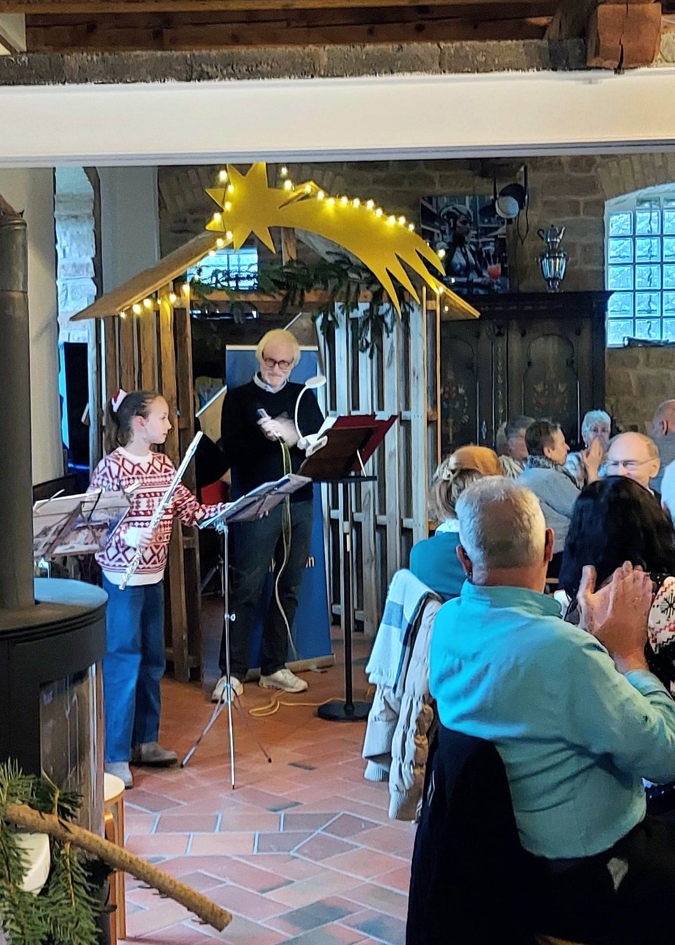 Im Namen des Vorstands begrüßte Burkhard Spang die zahlreich erschienenen Mitglieder und Gäste herzlich. Er betonte, wie wertvoll das Engagement und die Verbundenheit der Vereinsmitglieder für das lebendige Vereinsleben seien. Zugleich lud er zu offenen Gesprächen, zu Kritik und Anregungen ein, um den Verein auch künftig vielfältig und zukunftsfähig zu gestalten. Für die musikalische Umrahmung sorgte Frau Nicole Havener, die mit dem Akkordeon, dem Instrument des Jahres, weihnachtliche Klänge in den historischen Räumen der Mühle erklingen ließ. Bereits zu Beginn des Nachmittags setzte jedoch Lilli Spang, das zweitjüngste Mitglied des Vereins, einen besonderen Akzent: Mit ihrem Querflötenspiel schenkte sie den Gästen ei-nen ebenso einfühlsamen wie festlichen Einstieg und erntete dafür viel Applaus. Ein weiterer Höhepunkt war das reichhaltige Kuchenbuffet, das nach der offiziellen Eröffnung regen Zuspruch fand. Der Vorstand dankte ausdrücklich den zahlreichen Kuchenspendern, die mit ihrem Engagement wesentlich zum Gelingen des Nachmittags beitrugen. In ihrer weihnachtlichen Ansprache ließ die erste Vorsitzende Martina Cappel das vergangene Vereinsjahr Revue passieren. Mit großem Dank würdigte sie die Arbeit ihrer Vorstandskolleginnen und -kollegen sowie den Einsatz vieler Mitglieder, ohne den das Vereinsleben nicht möglich wäre. Für nachdenkliche wie heitere Momente sorgten schließlich literarische Beiträge: Burkhard Spang trug eine Weihnachtsgeschichte vor, die den Zuhörern ein Lächeln entlockte. Auch der bekannte St. Ingberter Dichter Manfred Kelleter verstand es, mit seinen Worten zu berühren, indem er nicht nur besinnliche Töne anschlug, sondern auch kritisch das Konsumverhalten in der Weihnachtszeit hinterfragte. So wurde die Weihnachtsfeier der Rohrbacher Heimatfreunde zu einem rundum gelungenen Nachmittag, der Besinnlichkeit, Kultur und Gemeinschaft auf harmonische Weise miteinander verband und vielen Gästen noch lange in guter Erinnerung bleiben dürfte.