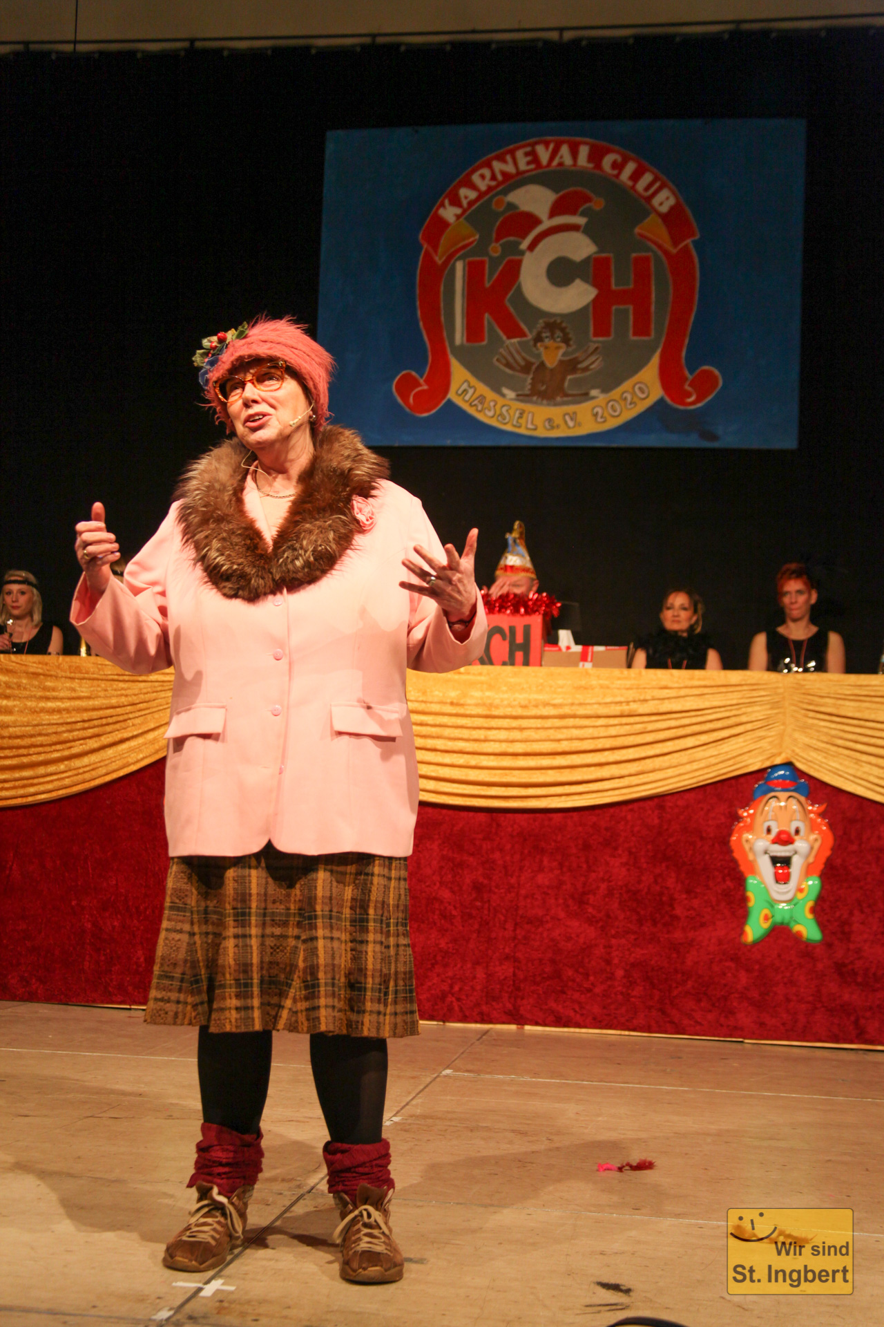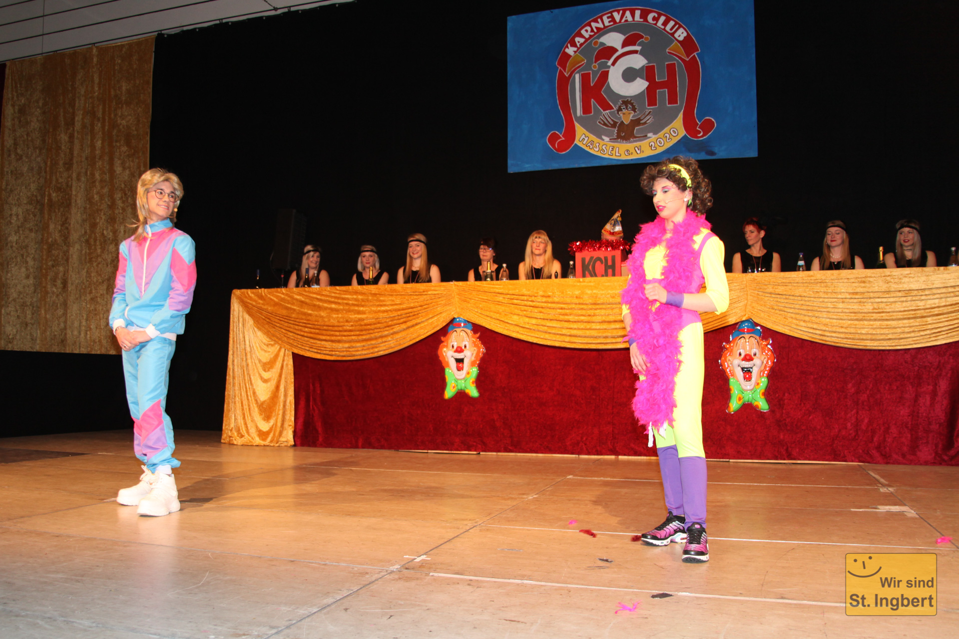 In der Eisenberghalle in Hassel schaute der Sitzungspräsident des Karneval Club Hassel, Rudolf Anstadt am vergangenen Samstag auf die Uhr und wartete geduldig auf den Bus aus Köln mit dem Kürassierregiment Vettelschloss. Kommen die Gäste rechzeitig? Die Kappensitzung in der Eisenberghalle startete zunächst pünktlich um 19:11 Uhr mit dem Einmarsch des (weiblichen) Elferrats. In der ersten Programmhälfte wechselten sich Gardetänze und Büttenreden ab. „Es kleen Schicksche und de Klän“ sorgten für einige Lacher in der Bütt, aber auch Jolanda Jochnagel und Sina konnten begeistern. Die Pause wurde etwas vorgezogen und pünktlich nach deren Ende trafen die Kölner endlich ein.