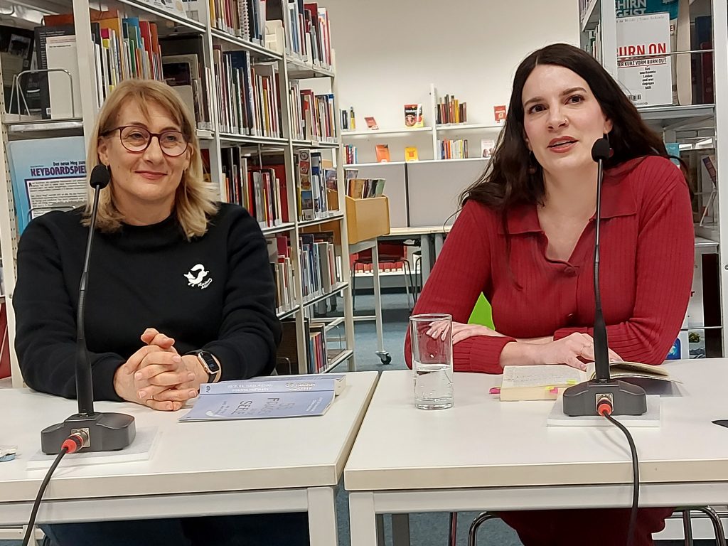 Wieder waren fast einhundert Gäste in die Stadtbücherei gekommen, als die beiden Psychologinnen Prof. Tanja Michael und Corinna Hartmann auf Einladung des St. Ingberter Literaturforums (ILF) ihren Bestseller “55 Fragen an die Seele – wie sie tickt und was ihr Halt gibt” vorstellten. Nach dem musikalischen Literaturabend mit Hans Bollinger und der szenischen Lesung zu Rainer Maria Rilke stand dieses Mal ein Sachbuch im Mittelpunkt.