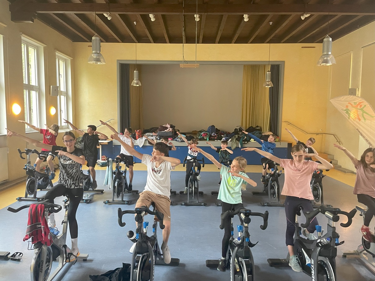 Am dritten und letzten Tag wurde den Kids bei der morgendlichen Spinning-Einheit (mit dem selbsternannten Spinning-Instructor Lars) noch einmal alles abverlangt. Mit fetziger Musik und vielen Tempowechseln wurde die Sportstunde möglichst abwechslungsreich und altersgerecht gestaltet. Auch hierbei kamen einige an ihr Limit und mussten immer wieder kurze Pausen einlegen.