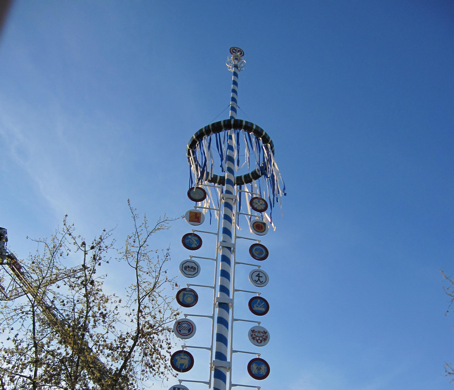 Zum Start in den Mai wird am Mai- und Zunftbaum vor der Oberwürzbachhalle auch in diesem Jahr ein Maikranz aufgehängt. Der weiß-blaue Kranz wird Oberwürzbach, den bayerischsten Stadtteil St. Ingberts, wieder bis in den Spätherbst weithin sichtbar schmücken.