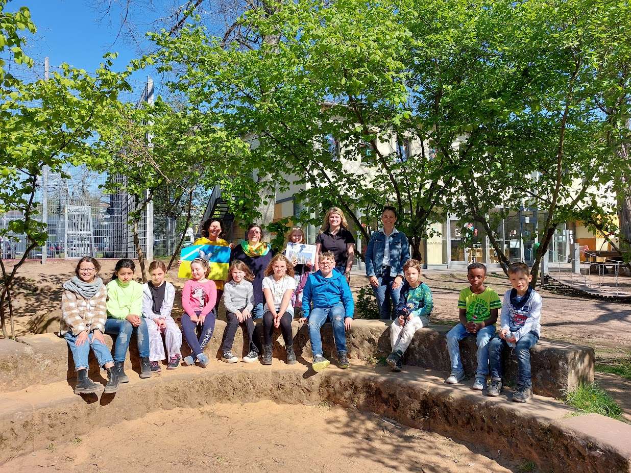 Bei sonnigem Wetter und mit Sonne im Herzen übergaben Kinder der Albert-Weisgerber-Schule eine Spende an Ute Strullmeier, die Vorsitzende des Kinderschutzbundes Ortsverband St. Ingbert e.V. Die Schülerinnen und Schüler waren mit ihrer Direktorin Susanne Biermeier und Katharina Burkhard von der FGTS der Albert-Weisgerber-Schule an die Wiesentalschule gekommen, um Spendengelder für ukrainische Kinder zu überreichen.